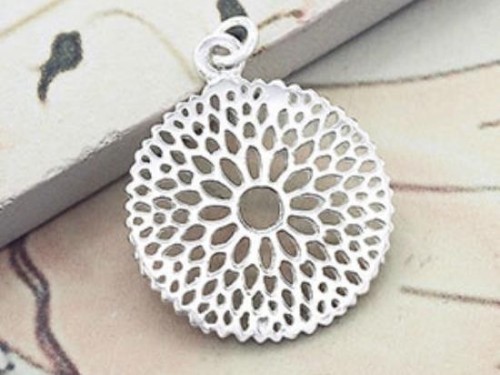 1 of 925 Sterling Silver Filigree Flower Pendant 18 mm. Polish Finished