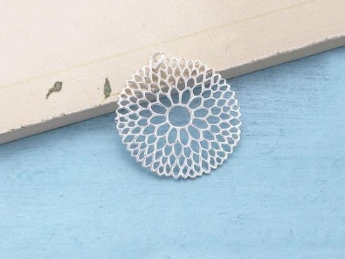 1 of 925 Sterling Silver Filigree Flower Pendant 30 mm. Polish Finished