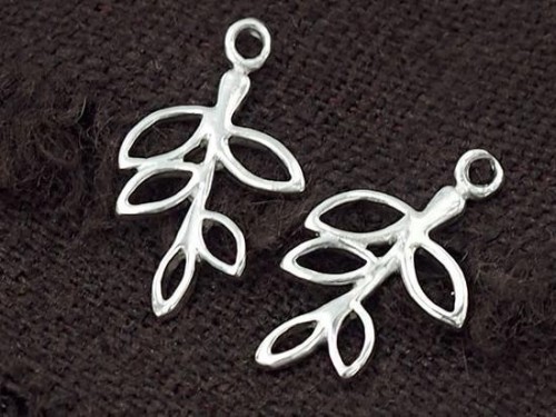 2 of 925 Sterling Silver Leaf Branch Charm 9.5x16mm. Polish Finished.