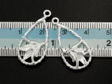 2 of 925 Sterling Silver Flower Pendants 13x24.5mm. Polish Finished.