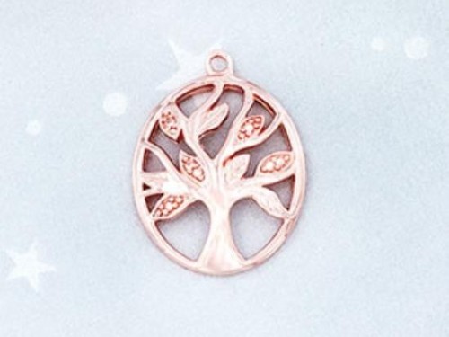 1 of 925 Sterling Silver Rose Gold Vermeil Style Tree of Life Pendant 15x18 mm.