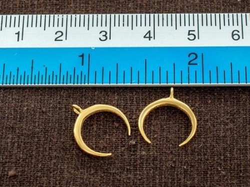 2 of 925 Sterling Silver Gold Vermeil Style Crescent Moon Pendants 12x11 mm. Polish Finish