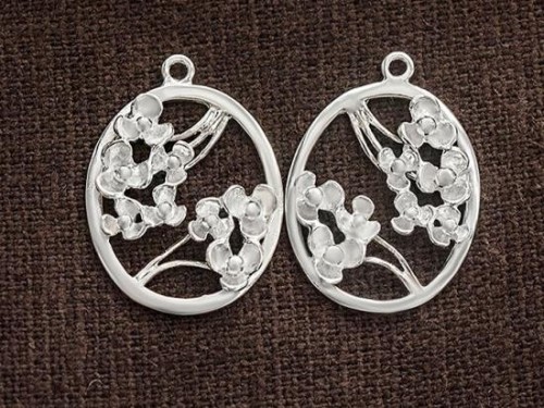 2 of 925 Sterling Silver Oval Flower Branch Pendants 16x20mm.
