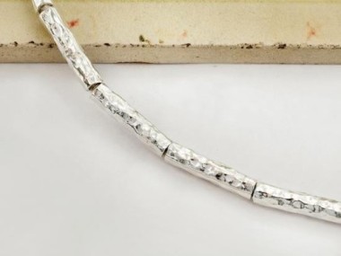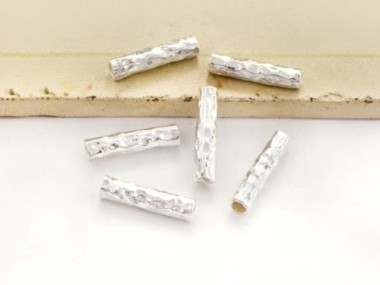 6 of Karen Hill Tribe Silver Hammered Tubular Beads 3.2x15mm.