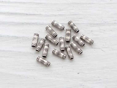 20 of Karen Hill Tribe Silver Imprint Tubular Beads 2.7x8 mm.