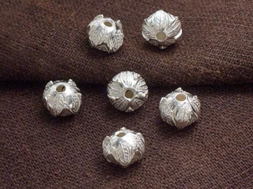 6 of Karen Hill Tribe Silver Wild Nut Beads 9x7 mm.