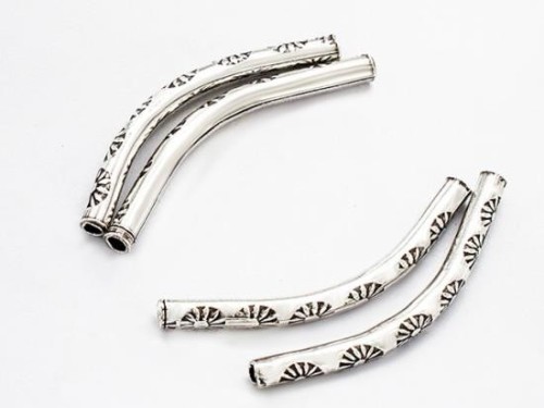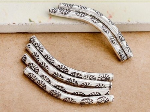 6 of Karen Hill Tribe Silver Sun Printed Curve Beads 2.6x30 mm.