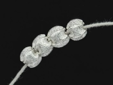 4 of Karen Hill Tribe Silver Textured Pleat Beads 8x9 mm.