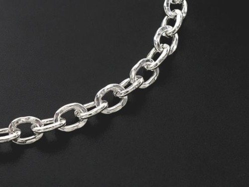 7 inches of Karen Hill Tribe Silver Hammered Oval Opened Link Chain 6.5x9.5mm.