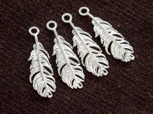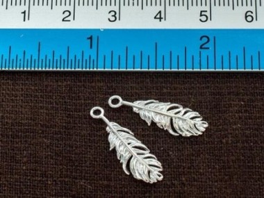 4 of 925 Sterling Silver Feather Charms 7x20 mm.