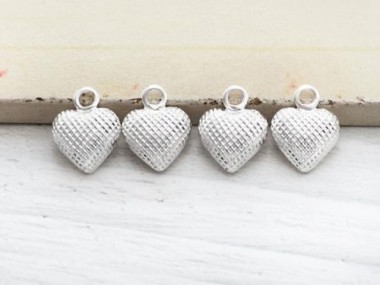 6 of 925 Sterling Silver Heart Charms 9 mm.