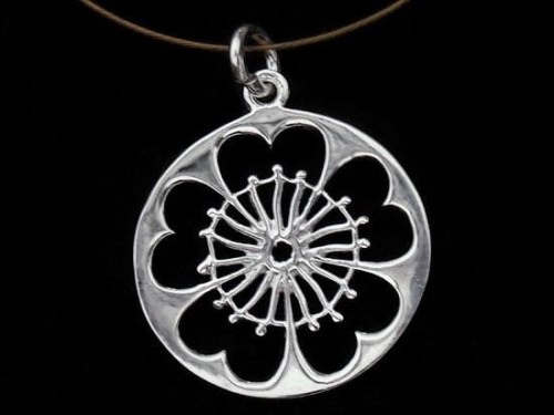 1 of 925 Sterling Silver Disc with Flower Cutout Charm 19 mm.Polish Finish