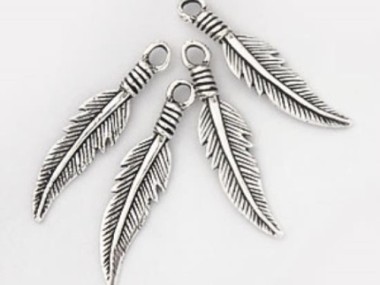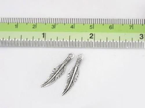4 of 925 Sterling Silver Oxidized Feather Charms 5x23.5 mm.