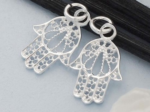 2 of 925 Sterling Silver Little Hamsa , Hand Of Fatima Charms 11x14 mm.