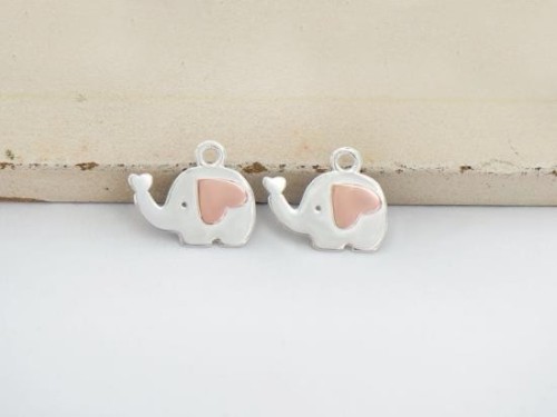 2 of 925 Sterling Silver Elephant Charms 7x12mm. ,Two Tone Rose Gold & Silver