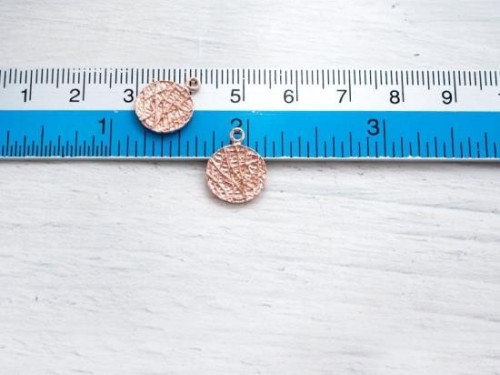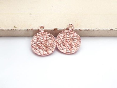 2 of 925 Sterling Silver Rose Gold Vermeil Style Textured Disc Charms 11 mm.