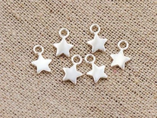 6 of 925 Sterling Silver Star Charms 6mm., Tiny Charms