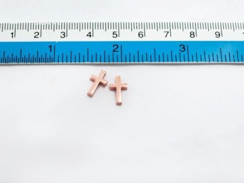 2 of 925 Sterling Silver Rose Gold Vermeil Style Cross Charms 7.5x12 mm.