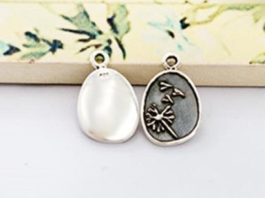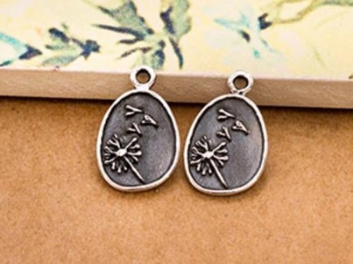 2 of 925 Sterling Silver Dandelion Charms 10x12mm . , Oxidized Finish.