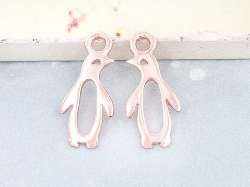 2 of 925 Sterling Silver Rose Gold Vermeil Style Penguin Charms 7x13mm.