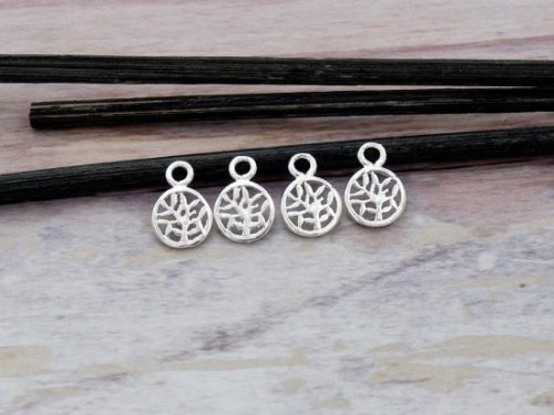 4 of 925 Sterling Silver Tree of Life Charms 7 mm. Polish Finished.