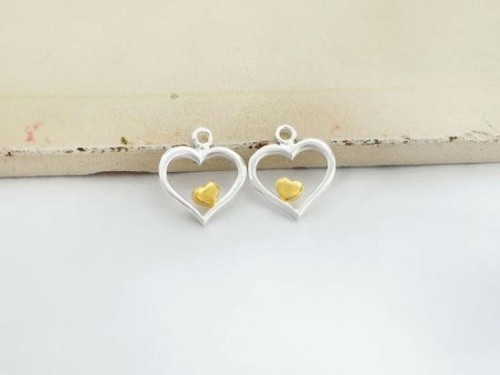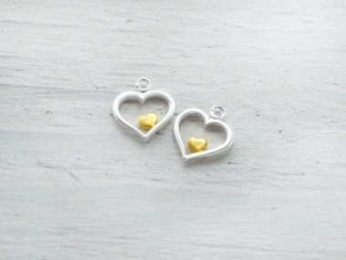 2 of 925 Sterling Silver Heart Charms 11mm. Two Tone Gold & Silver .