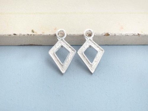 2 of 925 Sterling Silver Textured Diamond shaped Charms 8x11 mm.