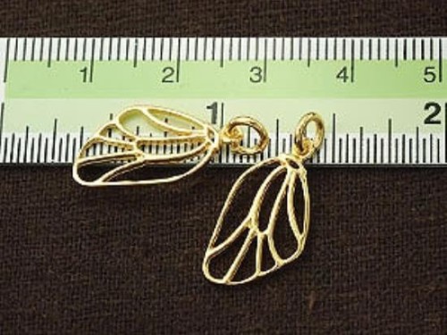 2 of 925 Sterling Silver Gold Vermeil Style Dragonfly Wing Charms 10x16 mm.