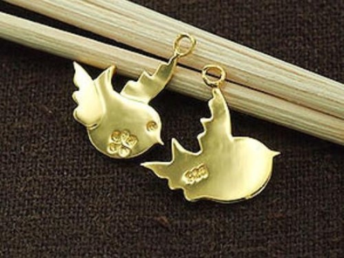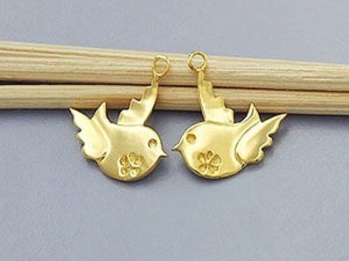 2 of 925 Sterling Silver 24k Gold Vermeil Style Bird Charms 14x15 mm.