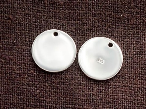 2 of 925 Sterling Silver Round Disc Tag Charms 12 mm.