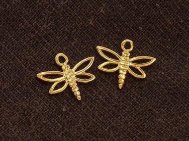2 of 925 Sterling Silver 24K Gold Vermeil Style Small Dragonfly Charms 13x15 mm.