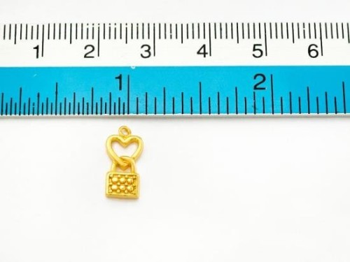 2 of 925 Sterling Silver 24k Gold Vermeil Style Heart Lock Charms 6.5x11.8mm.