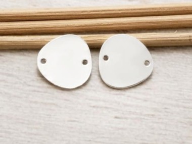 2 of 925 Sterling Silver Pebble Disc Links, Connectors 12.5 mm. Polish Finished