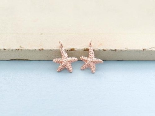 2 of 925 Sterling Silver Rose Gold Vermeil Style Starfish Charms 8x9mm.
