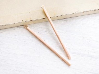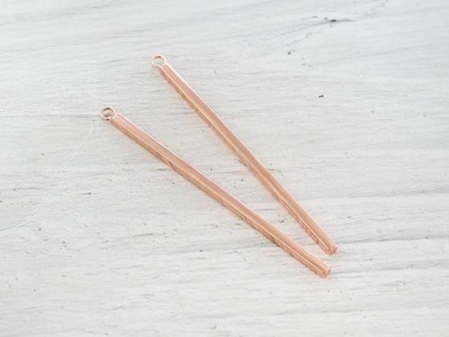 2 of 925 Sterling Silver Rose Gold Vermeil Style Rectangle Stick Charms 2x50mm. Polish Finished