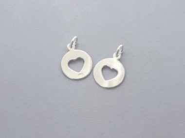 2 of 925 Sterling Silver Heart Charms 11.5mm.