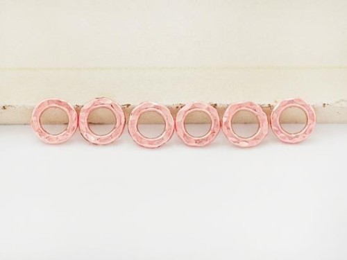 6 of Karen hill tribe Rose Gold Vermeil Style Hammered Closed Jump Rings 8 mm.