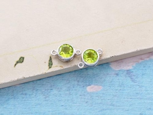 2 of Natural Round Peridot & Sterling Silver Bezeled Connectors, Links 6mm.