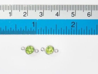 2 of Natural Round Peridot & Sterling Silver Bezeled Connectors, Links 6mm.