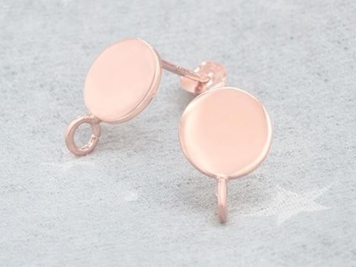 1 Pair of 925 Sterling Silver Rose Gold Vermeil Style Circle Disc Stud Earrings Post Findings 8mm. Polish Finished