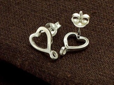2 pairs of 925 Sterling Silver Heart Earrings Post Findings 8.5x9 mm., with opened Loop