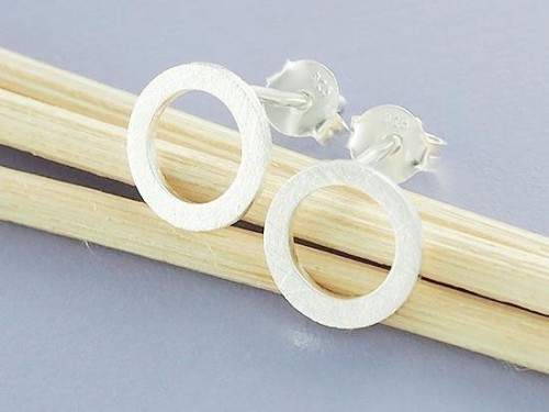 1 pair of 925 Sterling Silver Brushed Circle Stud Earrings 9mm. minimalist earrings