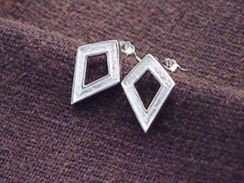 1 pair of 925 Sterling Silver Textured Diamond shaped Stud Earrings 8x11mm. minimalist earrings.