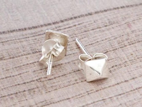 1 pair of 925 Sterling Silver Tiny Pyramid Earrings 4mm., Polish finished