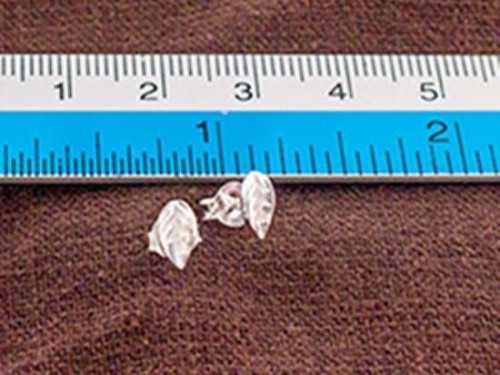 1 pair of 925 Sterling Silver Tiny Leaf Stud Earrings 3.5x7mm.