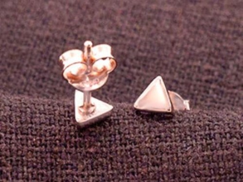 1 Pair of 925 Sterling Silver Rose Gold Vermeil Style Tiny Triangle Stud Earrings 4mm. Polish Finished.