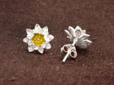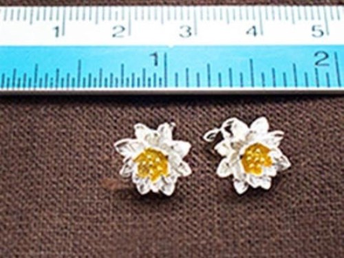 1 pair of 925 Sterling Silver Orchid Stud Earrings, Post Findings, Gold plated pollen 9x10 mm.