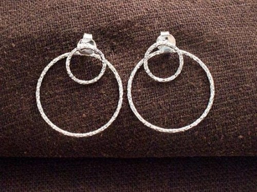 1 pair of 925 Sterling Silver Double Circle Ear Jacket Earrings 20 mm. Hoop Stud Post Earrings