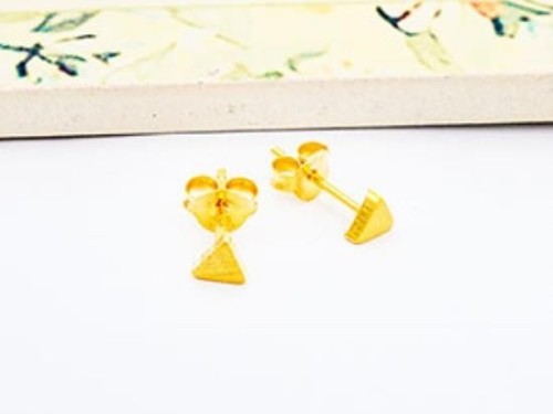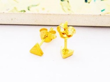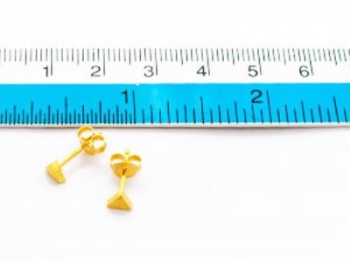 1 Pair of 925 Sterling Silver 24K Gold Vermeil Style Tiny Triangle Stud Earrings 4mm. Brush Finished.