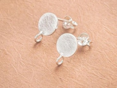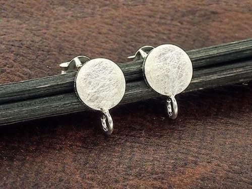 1 pair of 925 Sterling Silver Brushed Circle Disc Stud Earrings Post Findings 8mm. with Opened Loop.